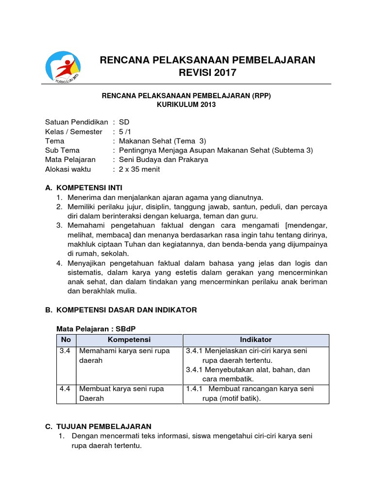 Rencana Pelaksanaan Pembelajaran Revisi 2017 A Kompetensi Inti